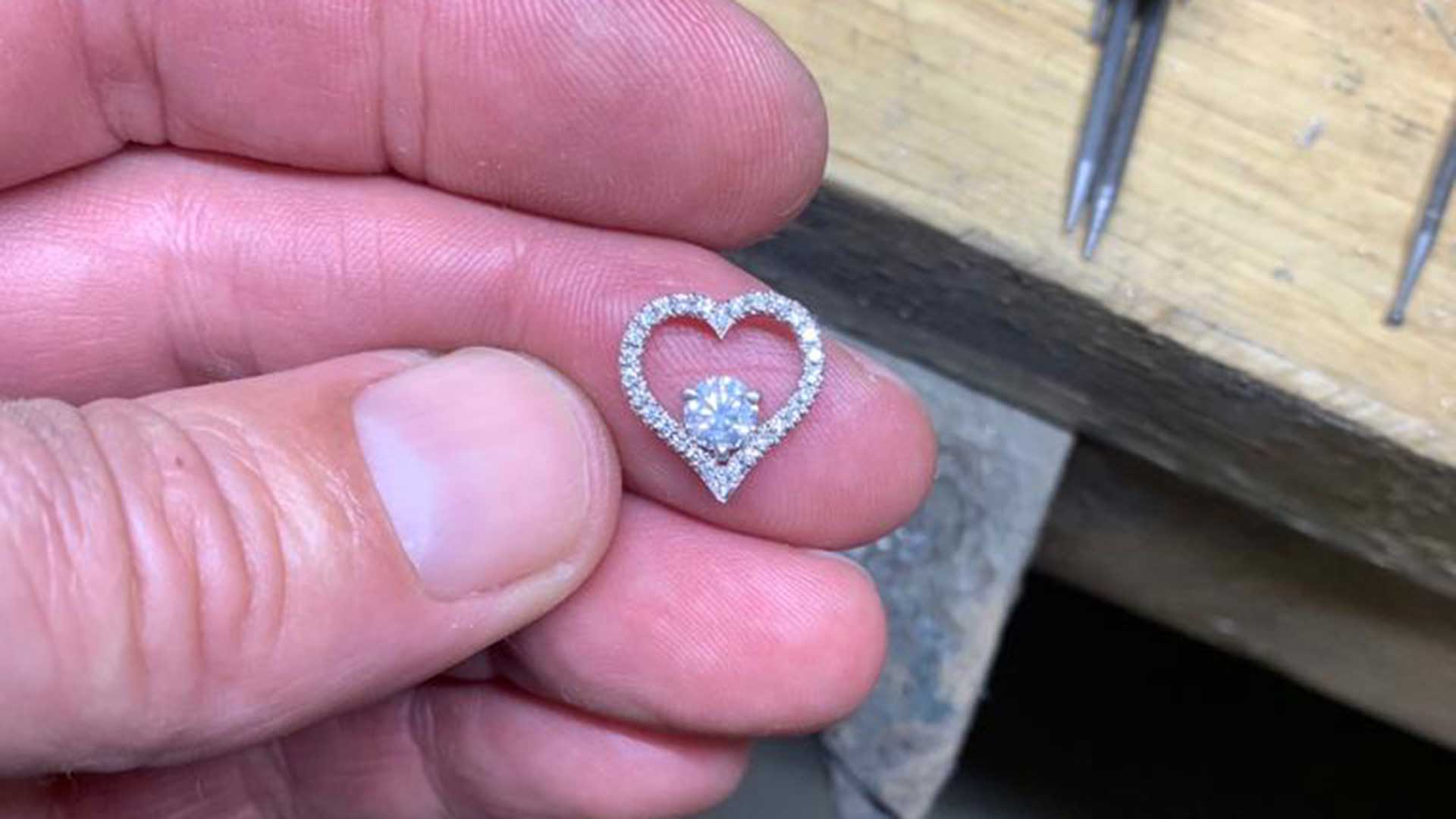 to come up with the shape and decide an appropriate size of small diamonds to go around the heart.