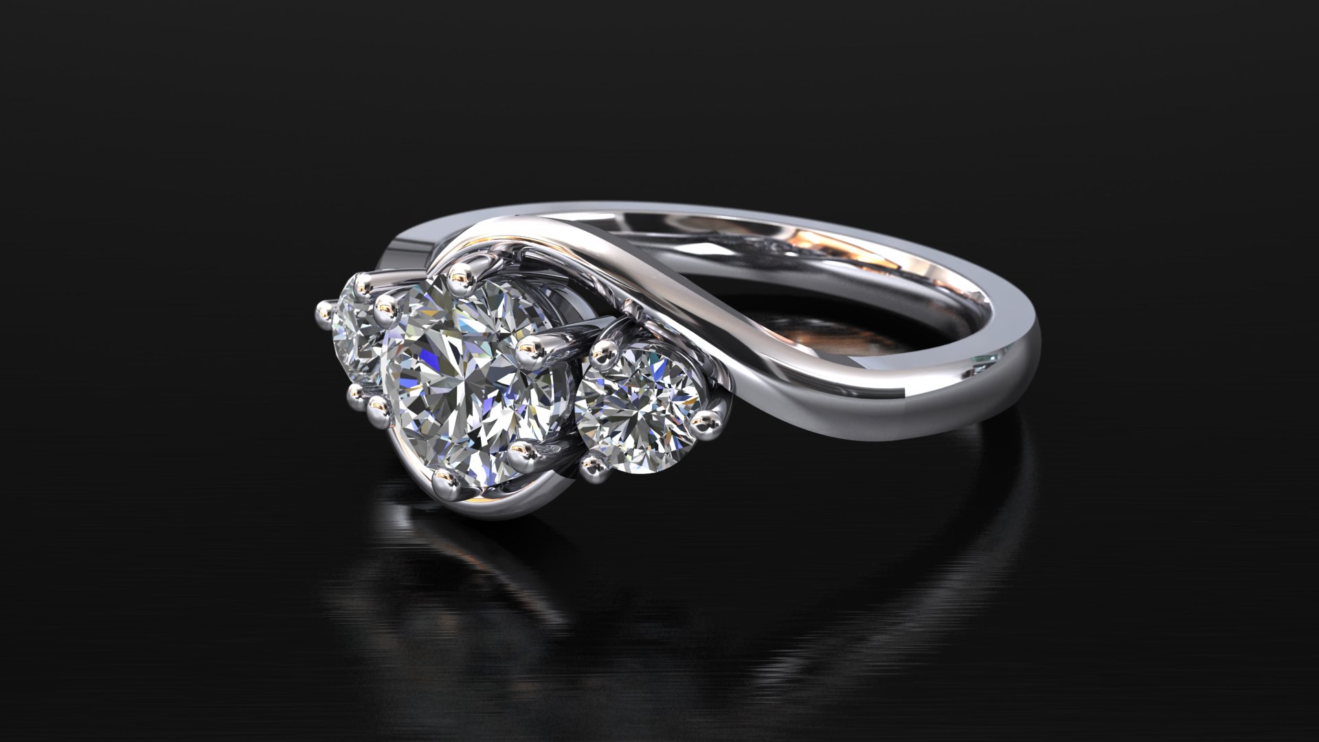 design was to use a smaller centre stone and the draft design had the shank sweeping just around